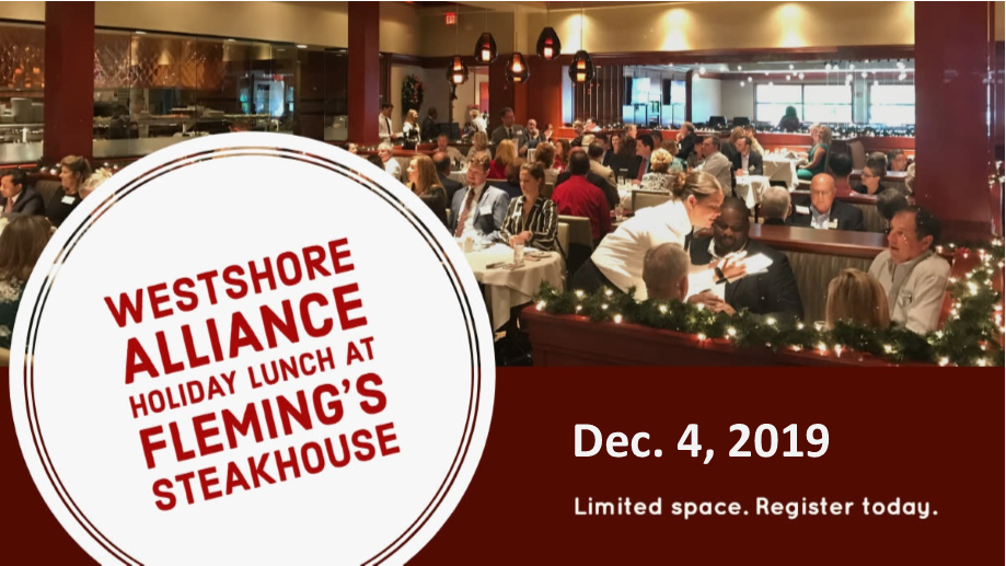 Join us at Fleming's Prime Steakhouse for our annual holiday celebration - no speakers, just great food and networking with your fellow Westshore Alliance members and friends! Space is limited, registration required.