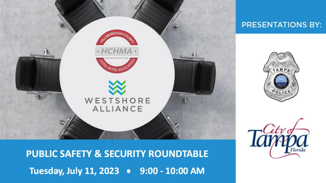 In partnership with the Hillsborough County Hotel/Motel Association, Tampa Police Department, and the City of Tampa, we invite you to join us for a public safety and security roundtable.